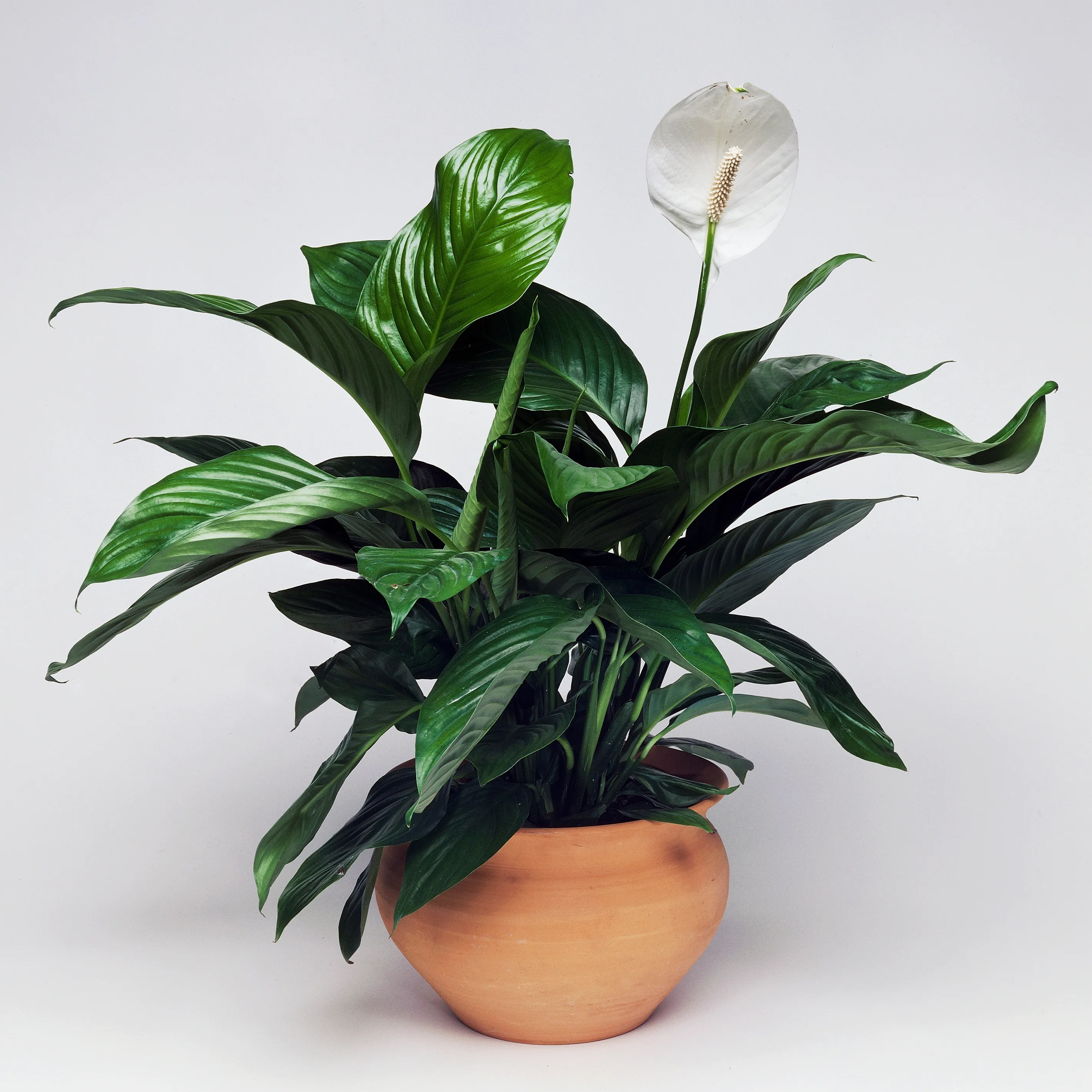 Peace lilies are excellent at absorbing moisture from the air, making them effective in rooms with high humidity levels, such as bathrooms and kitchens. Their glossy leaves release natural compounds that can limit mould growth. Peace lilies thrive in moderate, indirect light and require only weekly watering. Keep the soil slightly moist but avoid waterlogging, as they prefer humid conditions without excessive water around the roots.